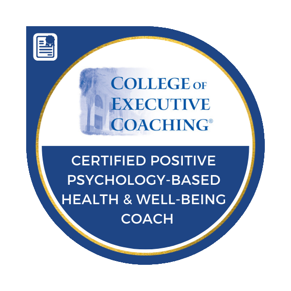 - Positive Psychology-Based Health and Well-Being Coach Certification through the College of Executive Coaching